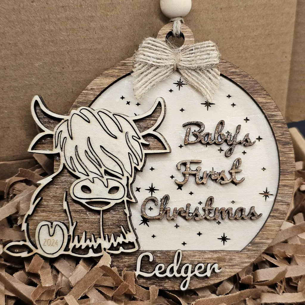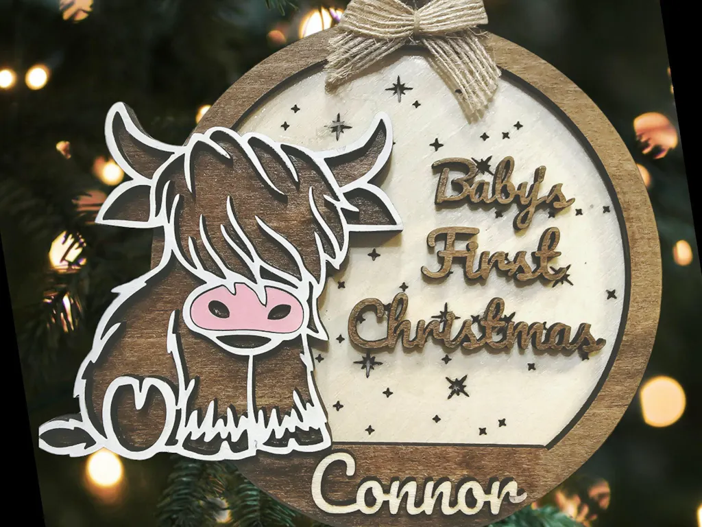 Baby's First Christmas Highland Cow Ornament: Personalized Holiday Decor