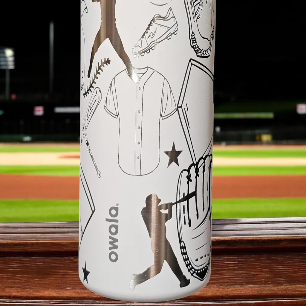 Baseball Engraved Owala Water Bottle: personalize with name and jersey number